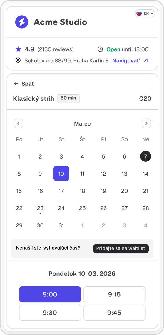 Jednoduché rezervácie. Viac klientov. Menej starostí.