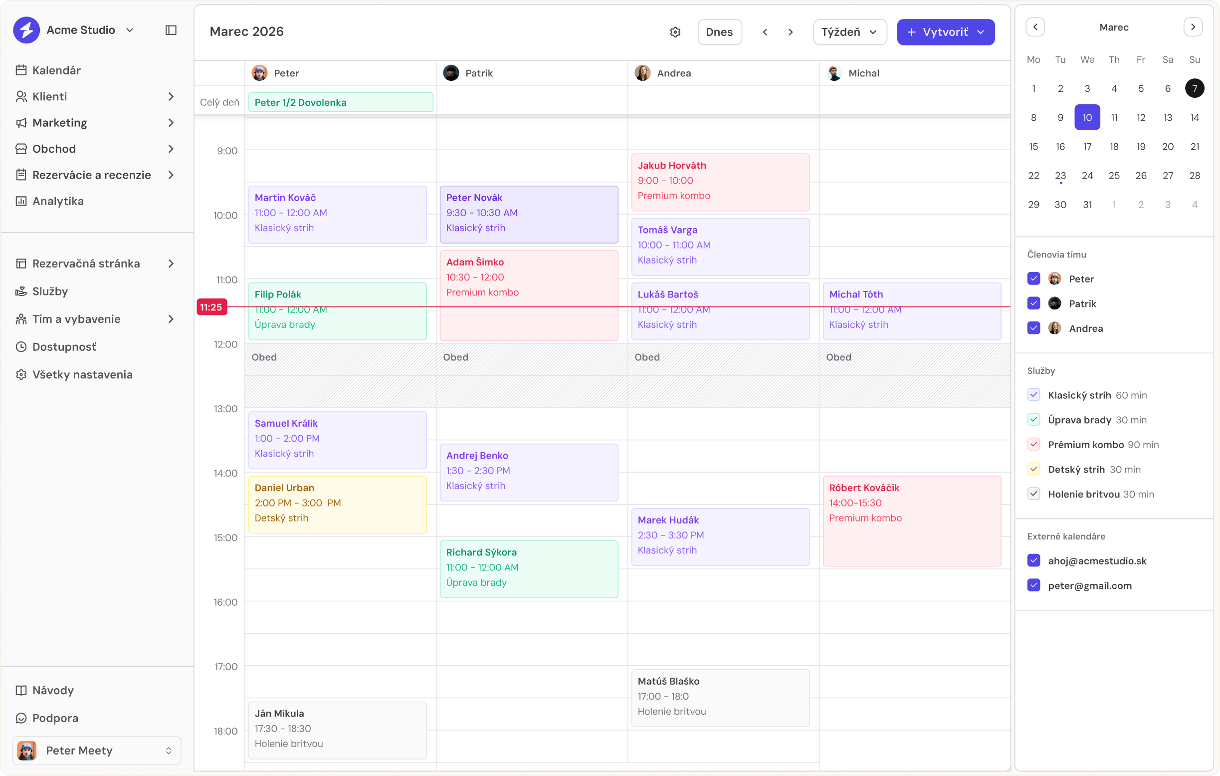 Z Meety máme fakt radost. Kluci nám pomohli přejít z Reservia tak, že jsme nemuseli zavřít ani na den – všechno přenesli, nastavili podle našeho starýho systému a vyřešili i drobnosti, na který bychom sami ani nepřišli. Top podpora přes WhatsApp. Odpovědi většinou do pár hodin, občas i hned. Když jsme něco chtěli doladit, prostě jsme napsali a většinou to druhý den už bylo. Kvůli nám dokonce přidali automatické generování příspěvků na sítě, dark mode (jo!), a možnost nastavit si pořadí barberů podle preferencí. Celkově? Moderní, přehledný, rychlý systém a super tým za ním. Doporučujeme všema deseti